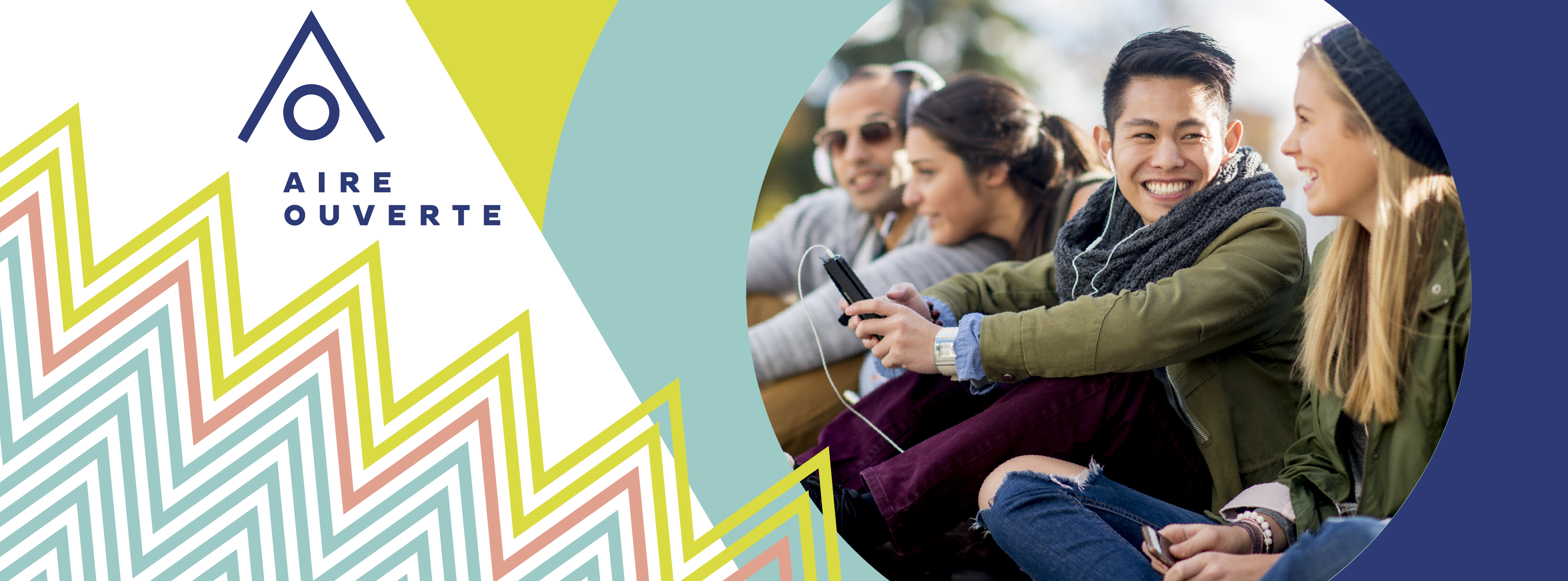 signature visuelle Entreprise en santé : 4 sphères (pratiques de gestion, habitudes de vie, conciliation travail-vie personnelle, environnement de travail)